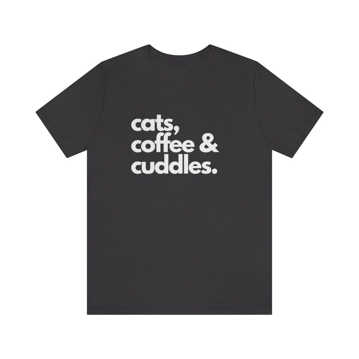 The four things we all need for a purrfect life are cats, coffee, cuddles, and this shirt.