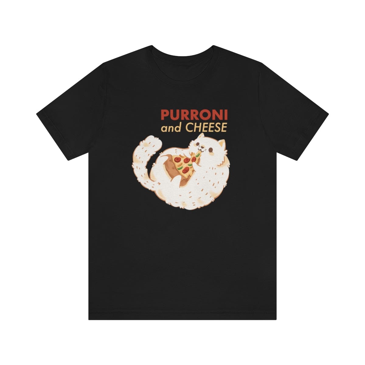 Don't tell the vet, but Purroni here has been getting into his human's pizza again. He's all about movie nights in and he's got the delivery service on speed dial. Sit down, relax, and knock out your streaming que in comfort wearing what is sure to be your new favorite tee.